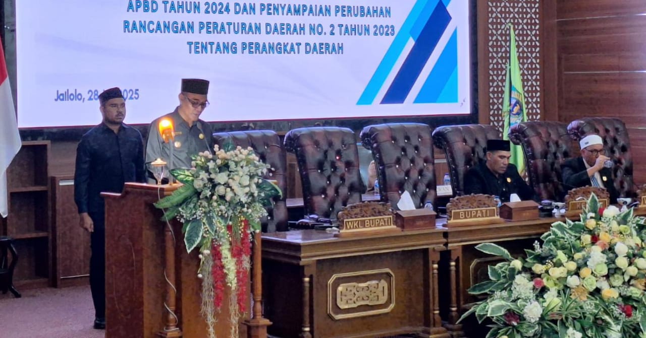Wakil Bupati Djufri Muhamad dalam pidatonya mengungkapkan, penyampaian penjelasan pemerintah daerah atas pengajuan ranperda tentang perubahan peraturan daerah nomor 2 tahun 2023 tentang perubahan ketiga atas peraturan daerah nomor 6 tahun 2016 tentang pembentukan dan susunan perangkat daerah kabupaten Halbar.