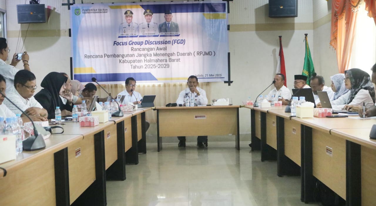 Pemda Halmahera Barat, Maluku Utara, melalui Badan Perencanaan, Penelitian, dan Pengembangan Daerah (BP3D) melaksanakan Focus Group Discussion (FGD) penyusunan Rancangan Awal (Ranwal) Rencana Pembangunan Jangka Menengah Daerah (RPJMD) 2025-2029.